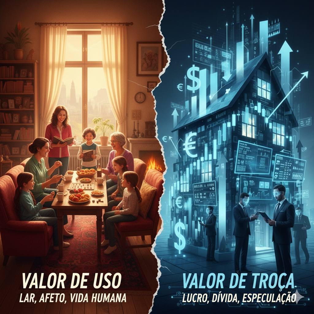 E a consequência social? A primazia do valor de troca condena milhões de pessoas à insegurança habitacional, aos aluguéis extorsivos, aos financiamentos eternos, enquanto imóveis permanecem vazios aguardando a melhor janela de valorização.